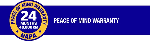 The NAPA Peace of Mind Warranty provides 24 months/40,000 km of worry-free protection on your qualifying repair or service work wherever you travel in North America. Your warranty is honoured at over 600 NAPA AUTOPRO locations in Canada and 11,000 NAPA AUTOCARE service centres across the United States.